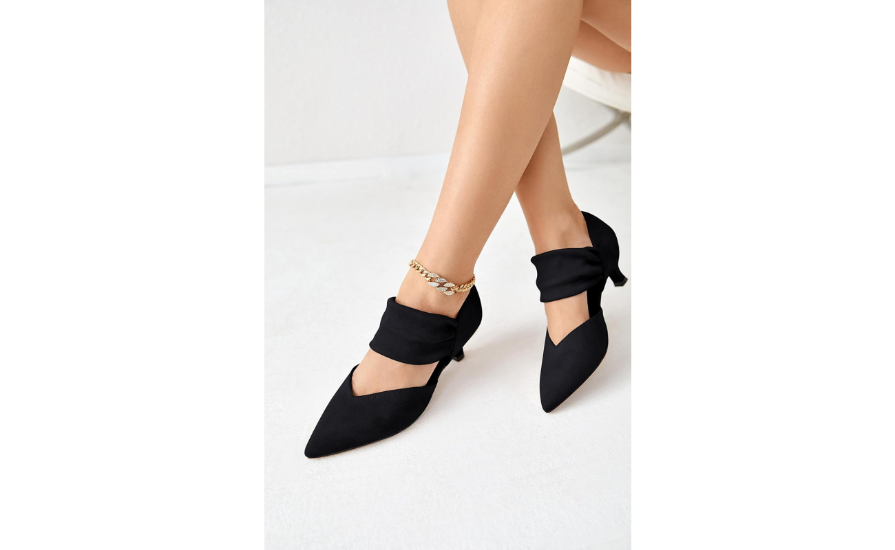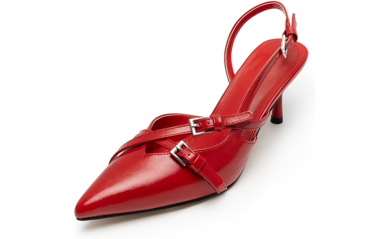 Kitten Heels for Women Pointed Toe Slingback Heels Closed Toe Wedding Dress Pumps with Buckles