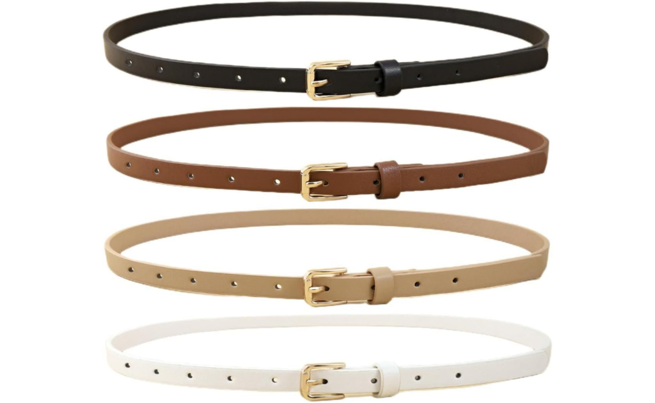 4 Pack Women Skinny Belts for Jeans Dress Thin Waist Belt for Ladies with Gold Buckle 0.55″ Width