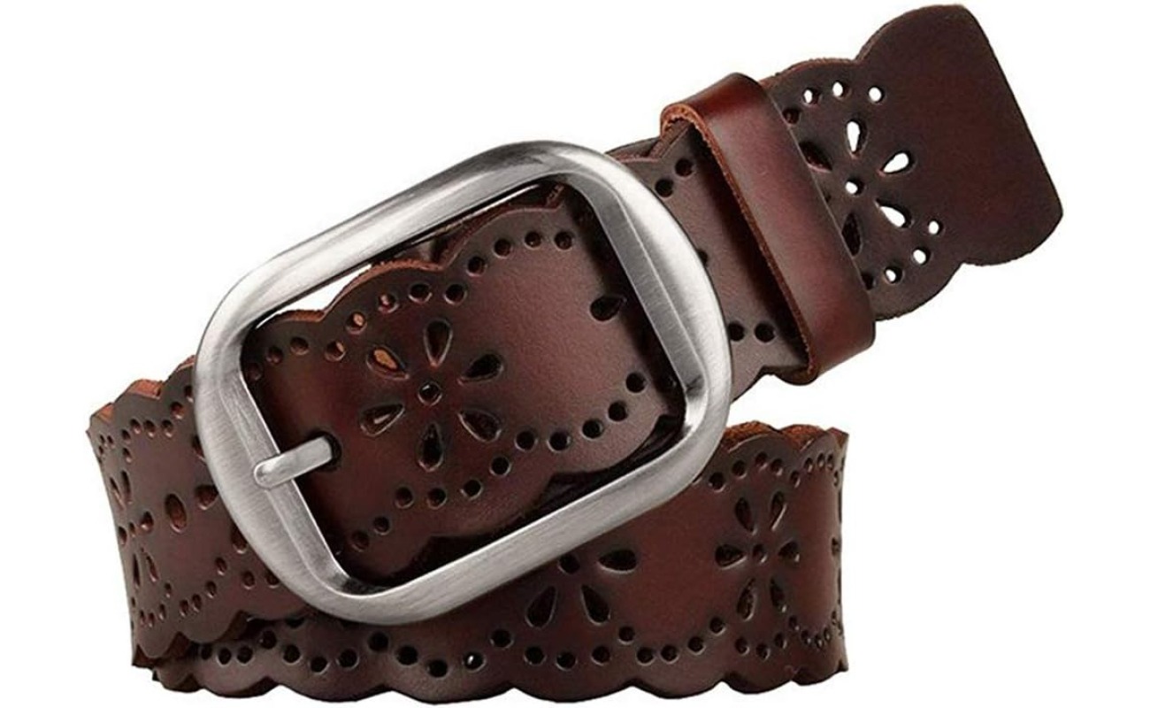 Women’s Hollow Flower Genuine Leather Belt for Jeans Pants Wide Belt for Ladies