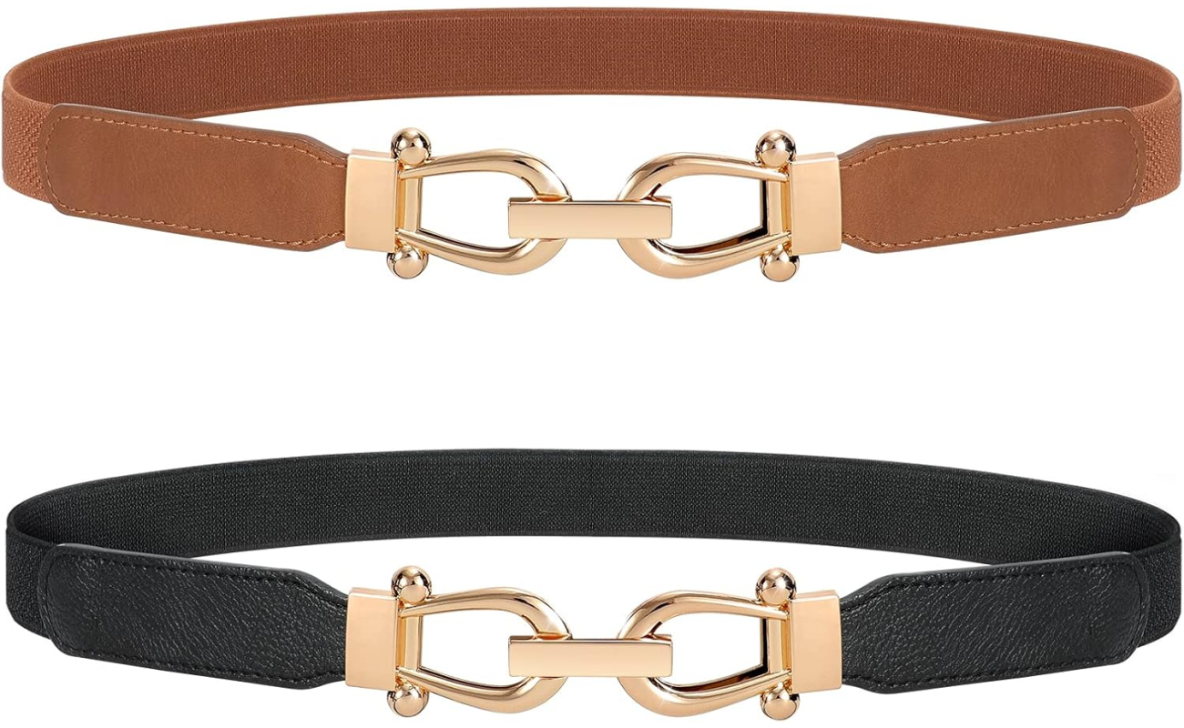 - Design: Stylish and unique round piece alloy buckle design makes this ladies dress belt more delicate and elegant. Good elastic elastic band perfectly accentuates your waistline, from the office to the nightclub, you will look slim and beautiful with its embellishment.