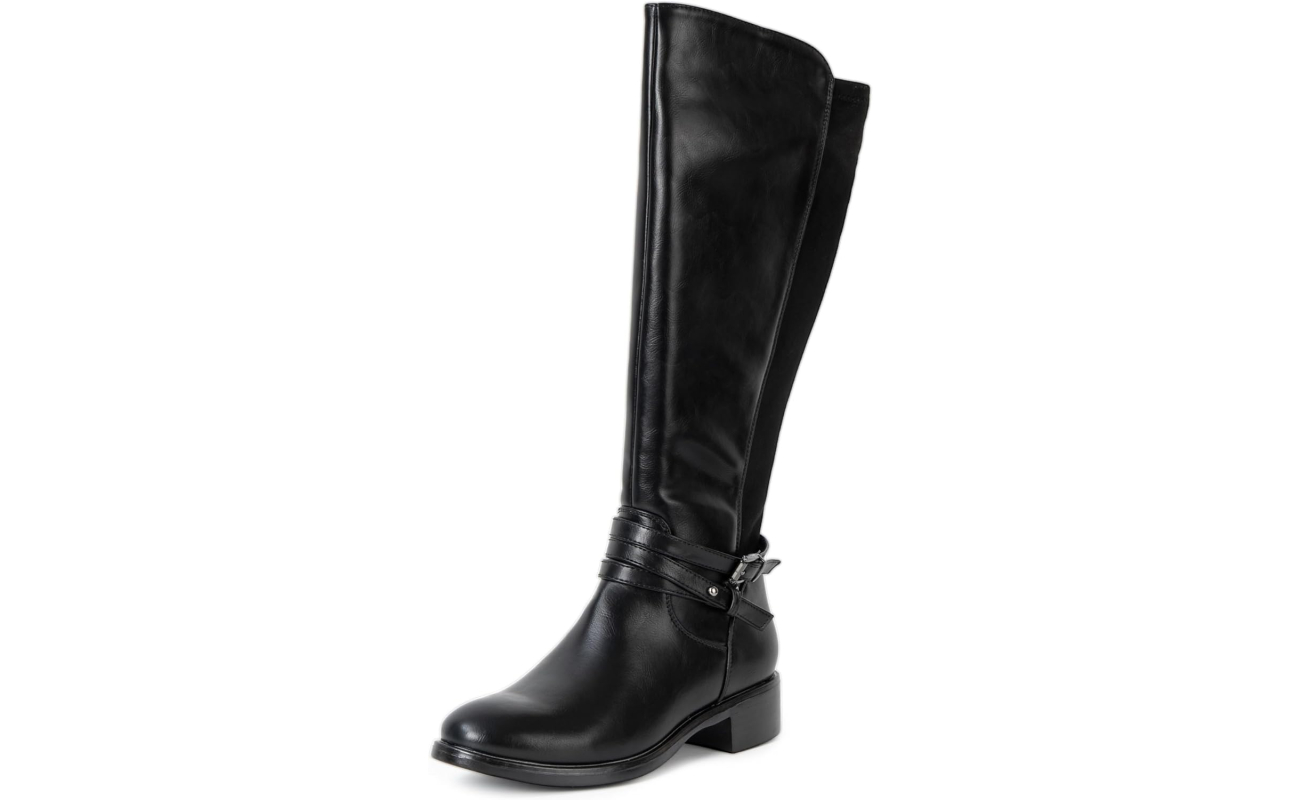 Women’s Knee High Riding Boots Stretch Calf Low Block Heel Boots