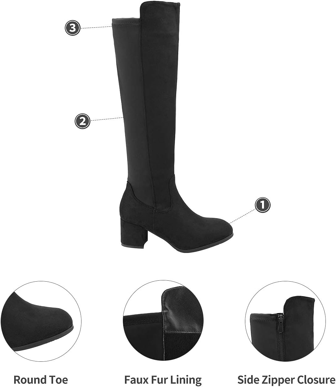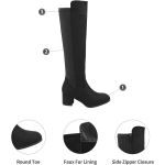 Knee High Boots Women Chunky Heel Square Toe Tall Boots for Women High Heel Side Zipper Long Boots