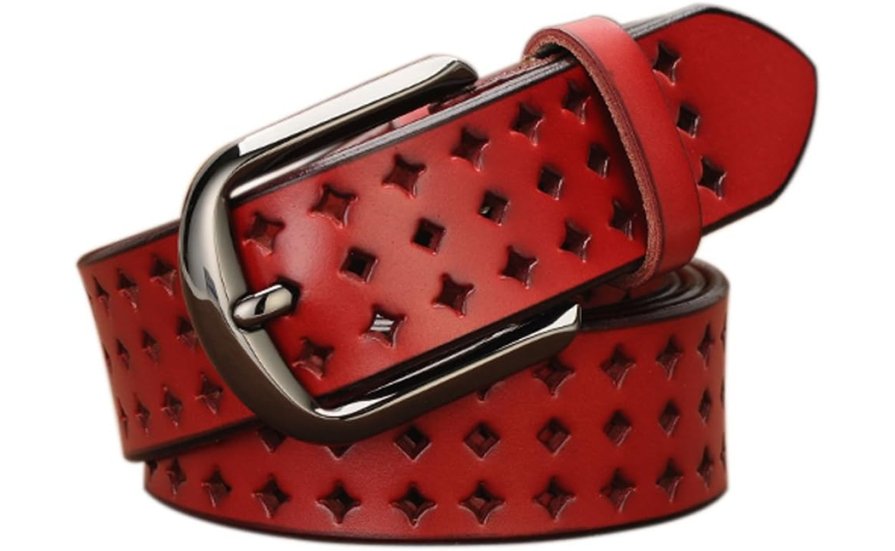 Hollow Leather Belts for Women, Soft Leather Womens Belts with Pin Buckle