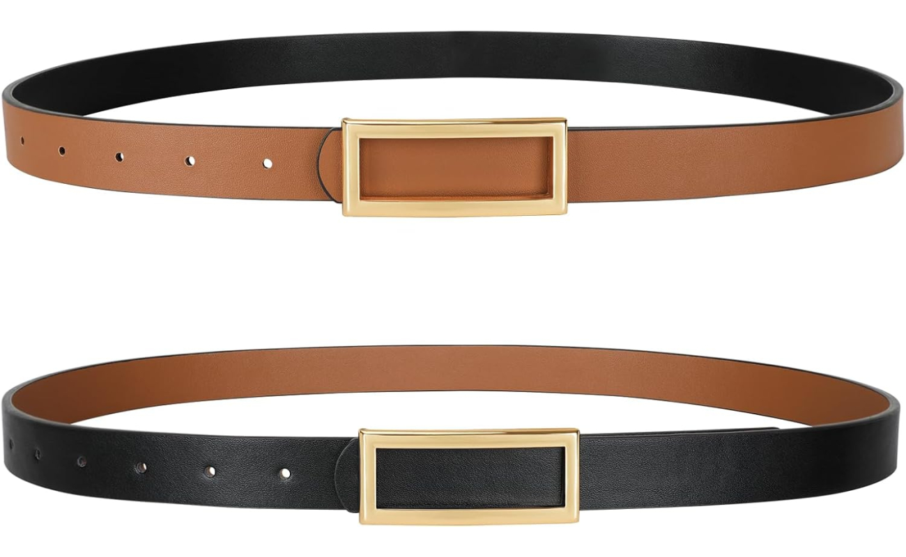 Skinny Reversible Belts for Women, Two-in-one Women Thin Belt for Dresses Jeans Pants with Gold Buckle